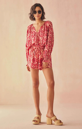 Meet your new warm-weather essential: the Asha Short in Tessa Goji. Designed for effortless comfort, these shorts feature an adjustable tie waist that lets you customize the fit, practical side pockets for your essentials, and an ultra-flowy silhouette that keeps you cool and breezy. The vibrant goji print brings instant energy to your wardrobe. Pair it with the matching top and your favorite sandals for a coordinated look that's ready for anything, from casual hangouts to weekend adventures.