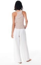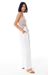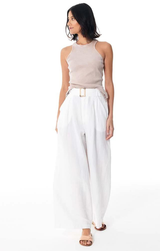 The wide leg pants you have been hoping for have arrived. Constructed in a breezy linen fabrication that keeps you cool and comfortable, with a belted waistline to flatter. Style with a crisp button down for the office or a casual tank and sneakers on the go.