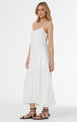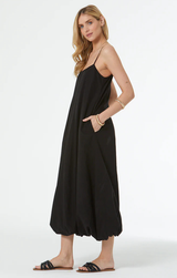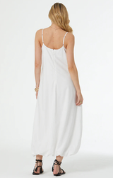 A classic midi with a modern twist. Featuring a slight scoop neckline, thin straps, dramatic bubble hem and a relaxed fit. Style with gold hoops and a cute clutch for a weekend ready look.