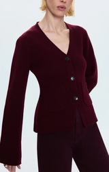 Your ideal layering piece! The Aeron Cardigan features a flattering V neckline and a relaxed fit that delivers effortless chic. Classic button-front styling adds timeless charm, while its cinched waist makes it the perfect layering piece. Crafted from a luxurious blend of soft fabrics, it feels incredible against the skin. Finished in a beautiful Claret, a deep burgundy shade that adds rich sophistication.