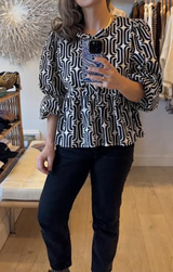 The Amaliada is a breezy blouse to carry you through almost every season. Featuring a self-tie neckline that creates cute little bows in the front, puffed sleeves that add a feminine touch, and a relaxed fit, all finished in a unique geometric print. Pair with slacks and a blazer for the office or simply style with your denim of choice!