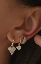Made from sterling silver and finished with 18k gold plating, the Amora Earrings are heart shaped huggies that feature cubic zirconia and are hypoallergenic, charming and effortlessly cute!