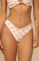 This charming bikini bottom adds a sweet touch to your beach looks. Featuring a mid-rise waist, moderate coverage, binded edges for durability, high cut leg, and a retro-style silhouette. Pair with the Cherries Tori Ties Bandeau Bikini top for the cutest swim set!