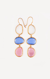 Chunky yet refined, these sculptural gold-plated earrings are made with luminous Cat's Eye stones in soft, island-inspired colors. Handcrafted with detail, they exude modern elegance and a sun-soaked sophistication that elevates any look.
