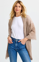 A perfect addition to your early spring or summer night looks. Featuring a felted design for the perfect amount of warmth, frayed hem and soft colors. Style over any loss from causal to dressy.