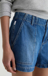 A polished and clean utility-inspired short crafted from AG's special linen-blend denim with all-direction stretch. Featuring a mid rise waist, classic pockets, light faded wash and a comfortable fit.
