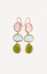 A bold, chunky statement piece, the Elif Summer Earrings feature luminous Cat's Eye stones in soft, island-inspired hues. Handcrafted in 18k gold-plated brass, these earrings are as unique as they are stunning. Perfect to compliment and outfit!
