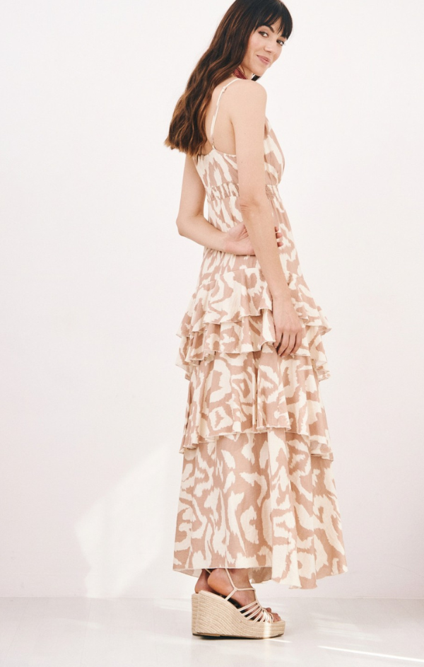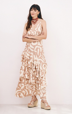 The lovely Lilith Maxi offers the feminine touch your summer closet needs. Featuring spaghetti straps, a classic V neckline, and a ruffly asymmetric hem that makes this piece stand out. Style with a raffia handbag and gold jewelry for your next summer event!