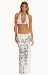 Effortlessly chic, these cover-up pants are crafted from beautiful hand-cut lace, designed with an adjustable tasseled drawstring waist and 24k gold accents. The scalloped hemline delicately skims the ground with each step. Pair with a bathing suit and gold jewelry for a chic beachy look.
