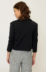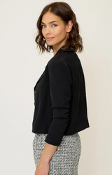 An easy throw on and go jacket to take you into the fall season. Featuring a modern cropped silhouette that hits at the waist, quarter length sleeves with scrunch design and a flattering fit. Style over a fitted tank and matching mini skort for a clean and polished look.