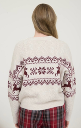 Let the holidays begin! It's never too early to get your festive knits ready. This cute pullover features a classic crew, cable knit details and a relaxed fit. The reindeer and snowflake pattern is perfect for your upcoming holiday parties. Style with a cute sequin skirt and boots or wear casually with lounge pants and slippers.