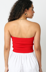 A chic and polished strapless tube top to dress up or down this summer. Featuring a flattering sweetheart neckline, ribbed fabric and fitted body. Style with denim shorts and sandals.