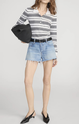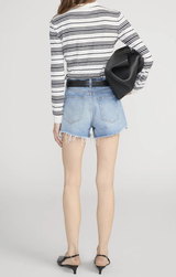 Your classic summer cutoffs in a distressed vintage wash and featuring a frayed hem, mid-rise waist, and a rigid non stretch, pure regenerative cotton. Style with a classic tee and sneakers for a relaxed summer look.