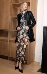 The dress of our dreams has arrived just in time for your upcoming fall weddings. Featuring long sheer sleeves, mesh mock neck, an ultra flattering body skimming fit and bold floral prints. Style with heels and gold earrings for a dressy event vibe.