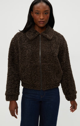 A staple layering piece for the cool weather. Featuring a zip up front, soft shearling fabric and rich java hue. Style with a basic tee and dark denim with sneakers for a casual yet style look.